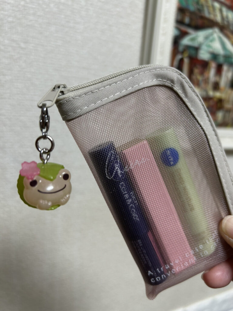小さいポーチにはリップを入れてみました メッシュポーチは中身が見れて良いね👍