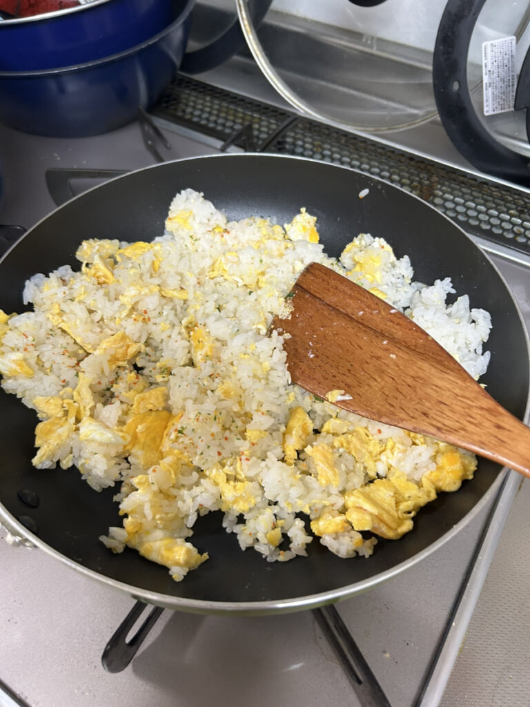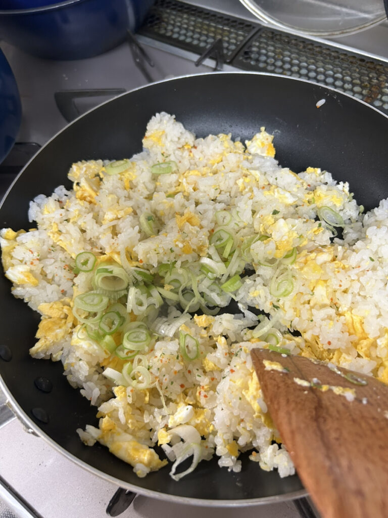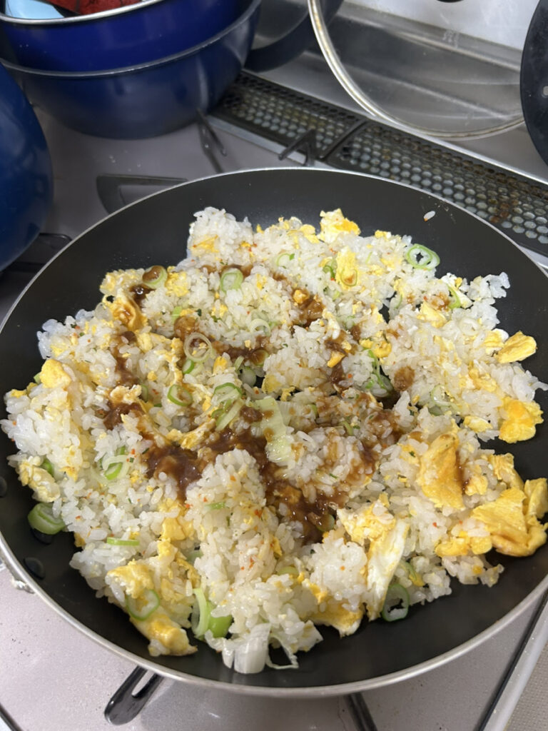 炒飯の素が液体だからお米が油でコーティングされていてべちゃっとしていなかった😲