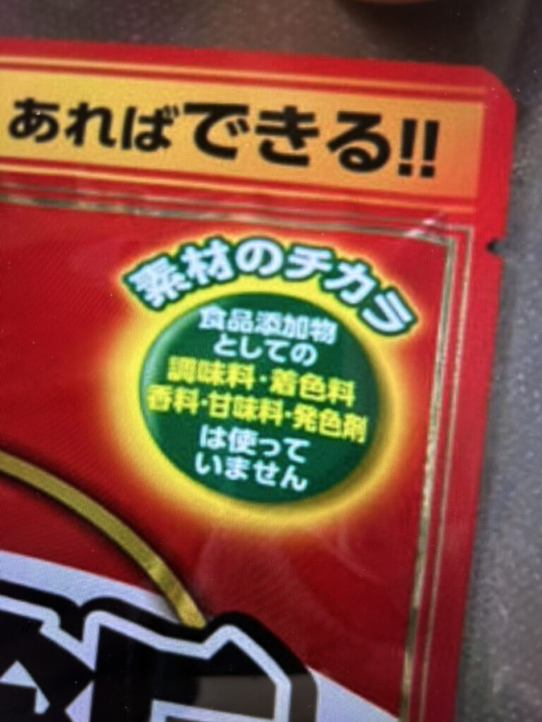 しかもこの商品は食品添加物としての調味料、着色料、香料、甘味料、発色剤は使ってません