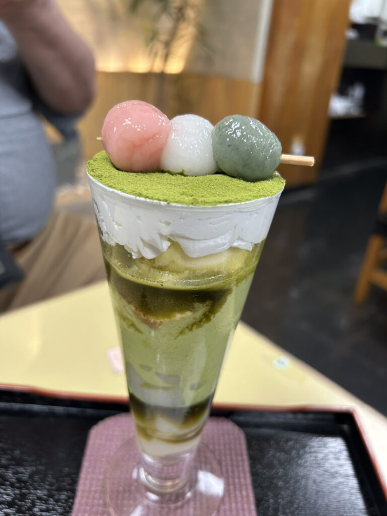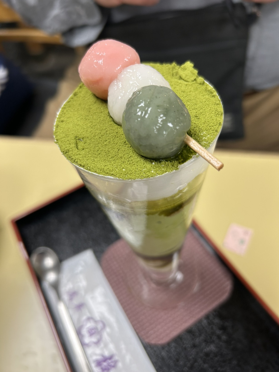 なんとも可愛らしいお団子がのっかっている綺麗なパフェがきましたよぉ~✨