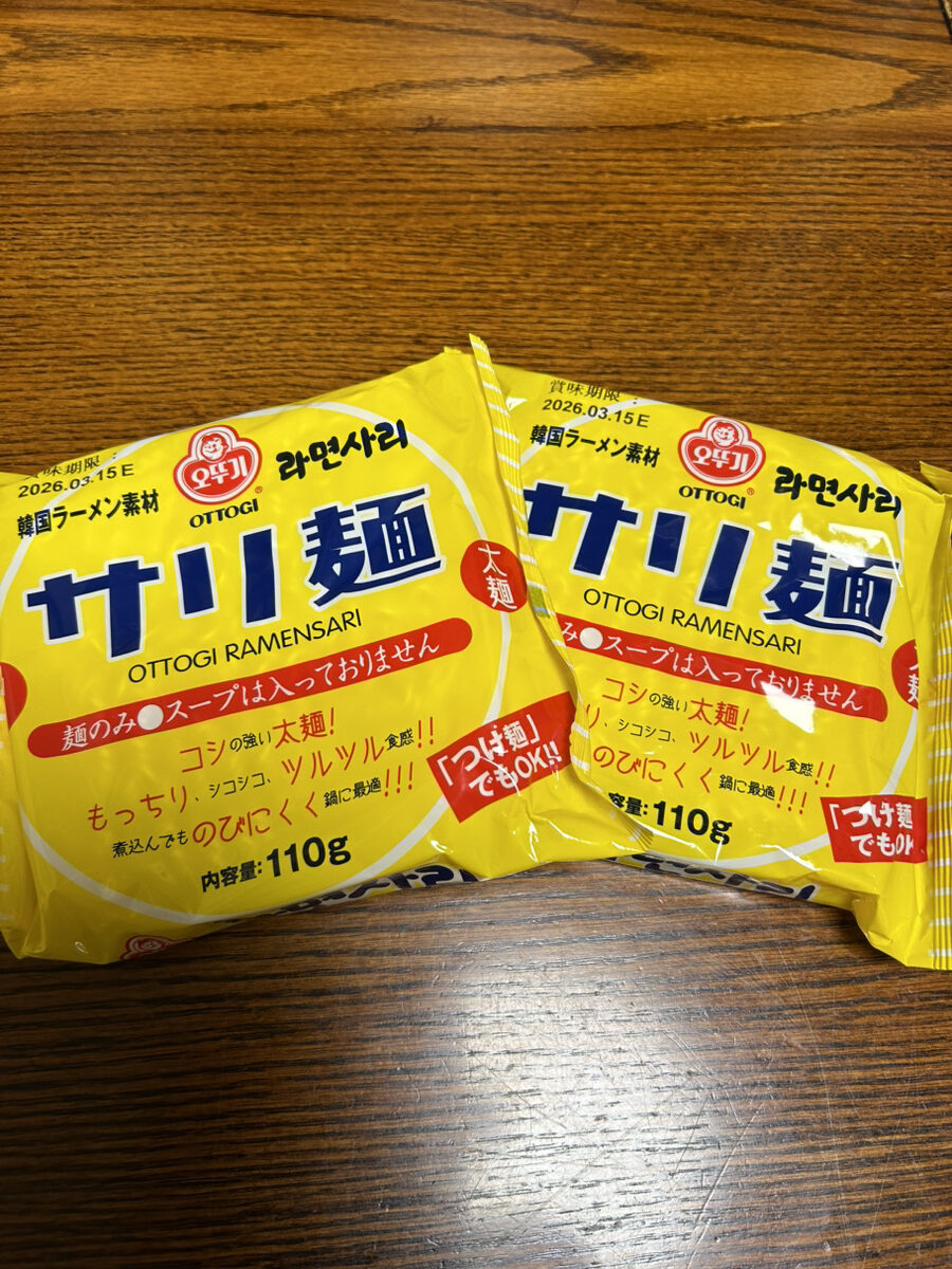 サリ麺も買ったよ👍二袋で146円(税込み)安いよね👍スープは入ってないけれど簡単に作れますよ😊