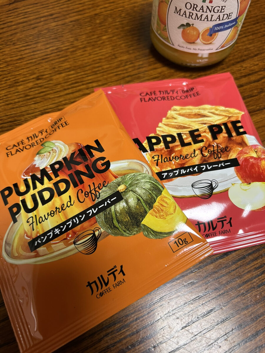 今年はパンプキンフレーバー🎃とアップルパイフレーバー🍎購入です各200円(税込み) 昨年は確かモンブランのフレーバーでしたね🌰