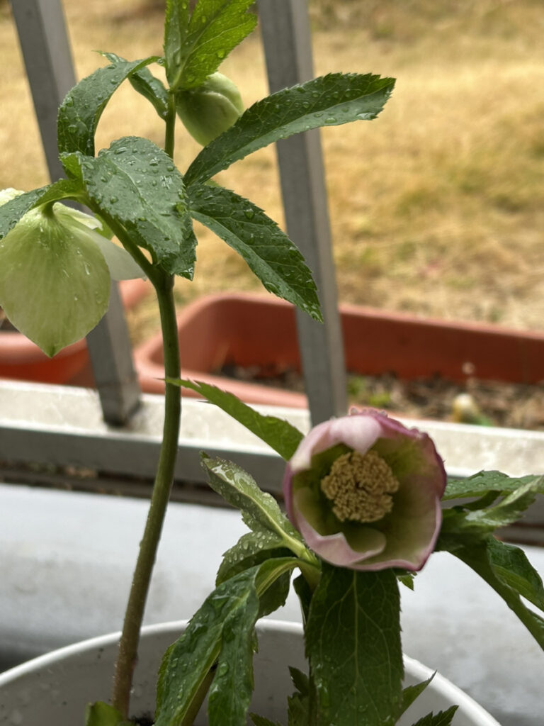 鉢に移し替えた クリスマスローズはうつむいて咲く花…撮るのが難しいね☺️
