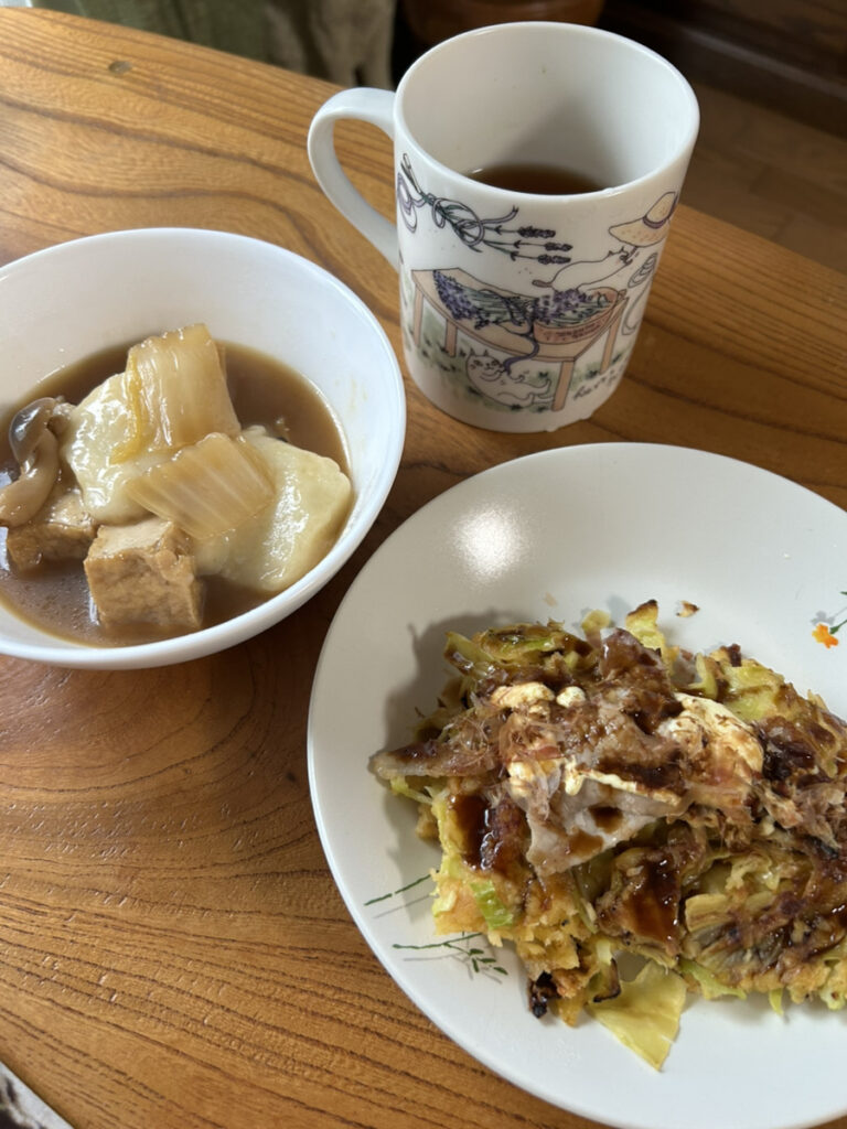 前日のランチで作ったお好み焼きのあまりと