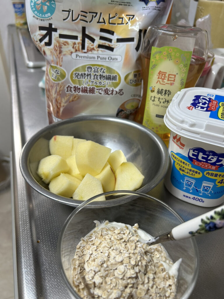 👆👆👆のようにヨーグルト、オートミール、リンゴなどを(もちろん入れても無くても👌)