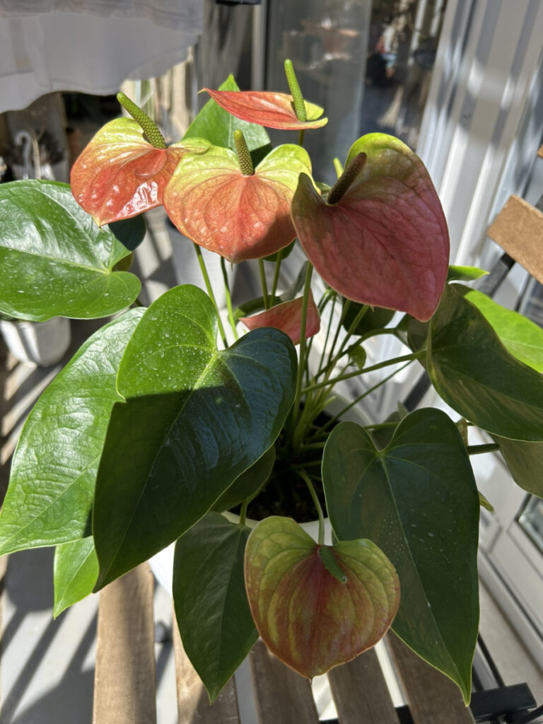 部屋のアンスリウムも追肥して日向ぼっこ